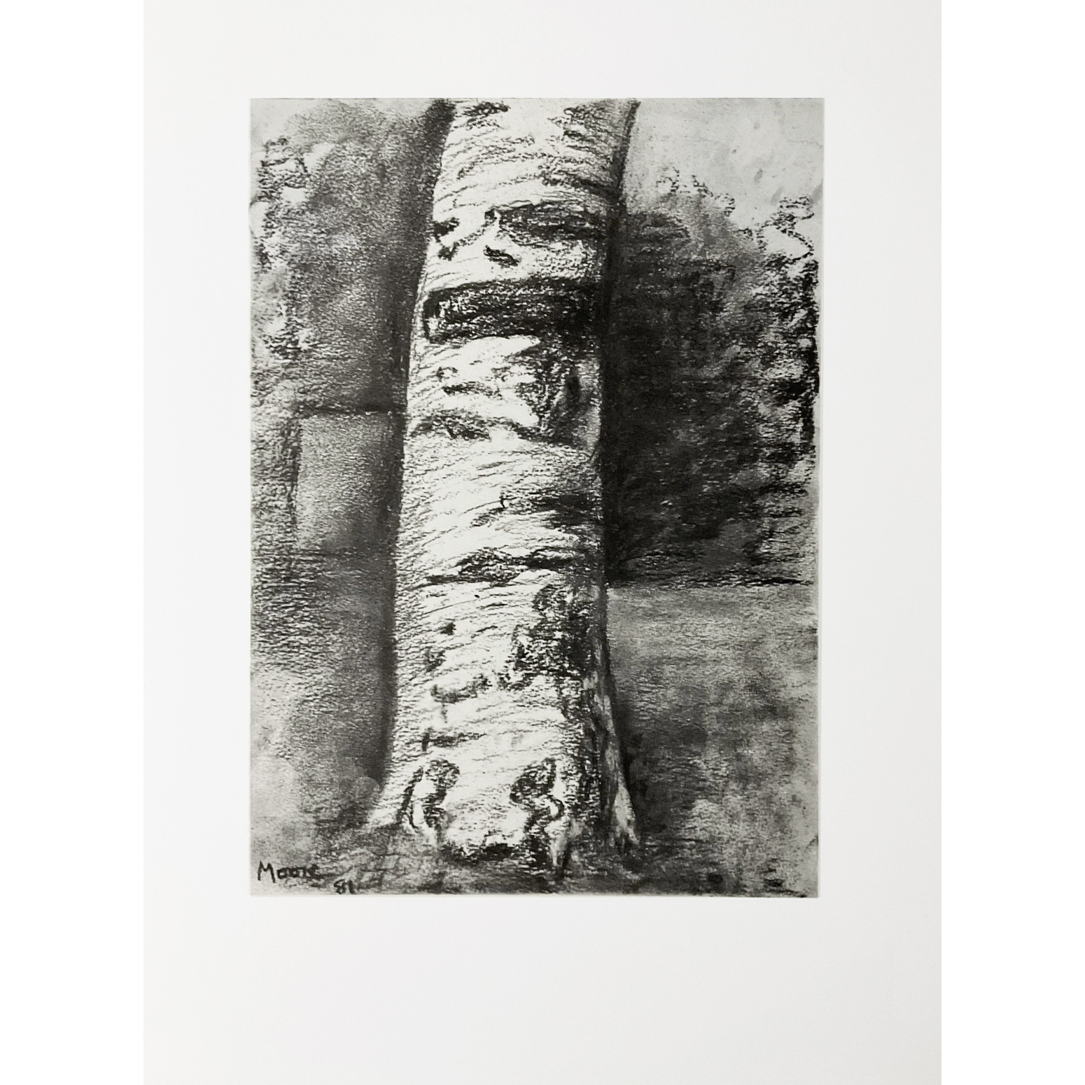 Lithographic print on Miliani di Fabriano wove paper featuring an artwork from one of the most significant British artists of the twentieth century Henry Moore titled “Beech Tree Trunk, 1981”. One of 3000 limited editions from 1983 courtesy of Edizioni Seat published in Rome. Plate signed in the bottom left corner and complete with transparent felt paper.