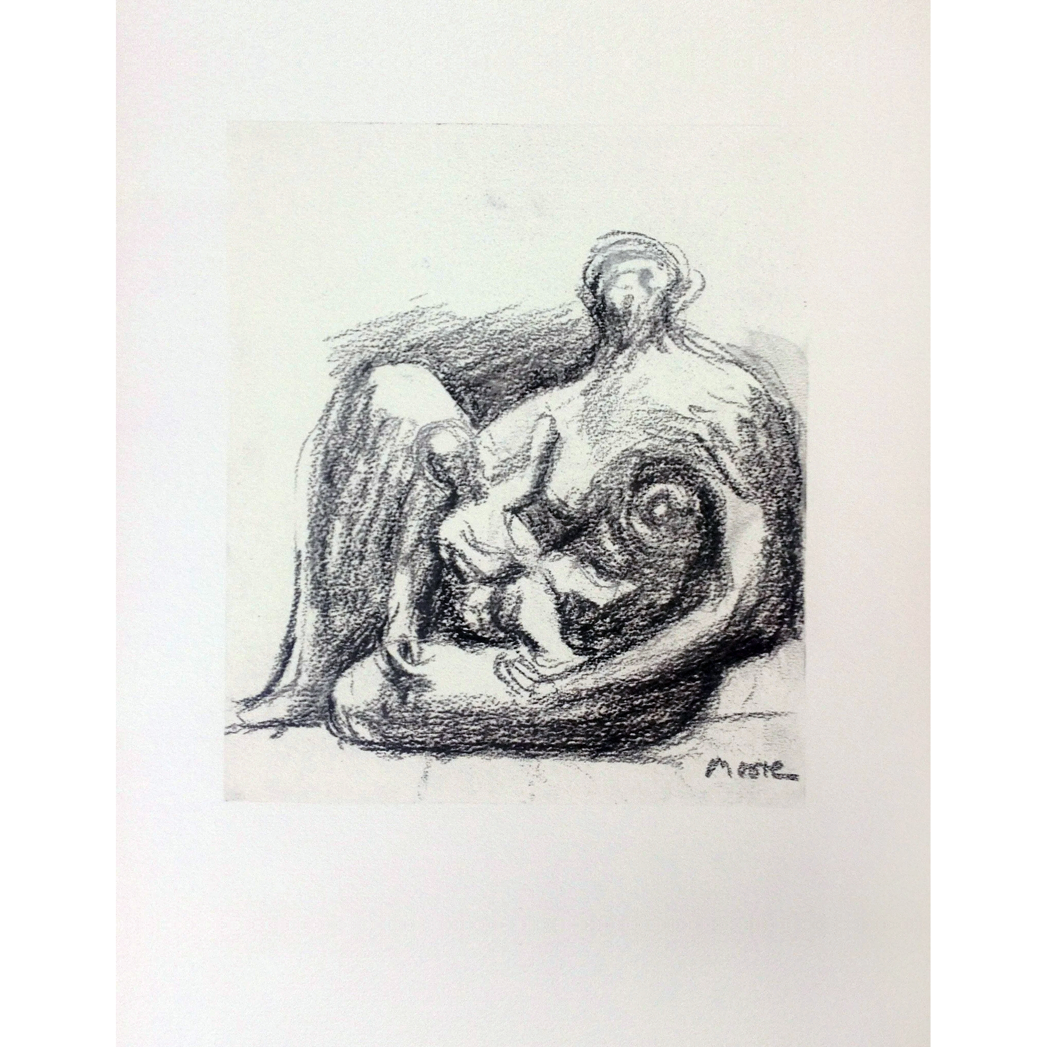 Lithographic print on Miliani di Fabriano wove paper featuring an artwork from one of the most significant British artists of the twentieth century Henry Moore titled “Seated Mother and Child I, 1981”. One of 3000 limited editions from 1983 courtesy of Edizioni Seat published in Rome. Plate signed in the bottom right corner and complete with transparent felt paper.