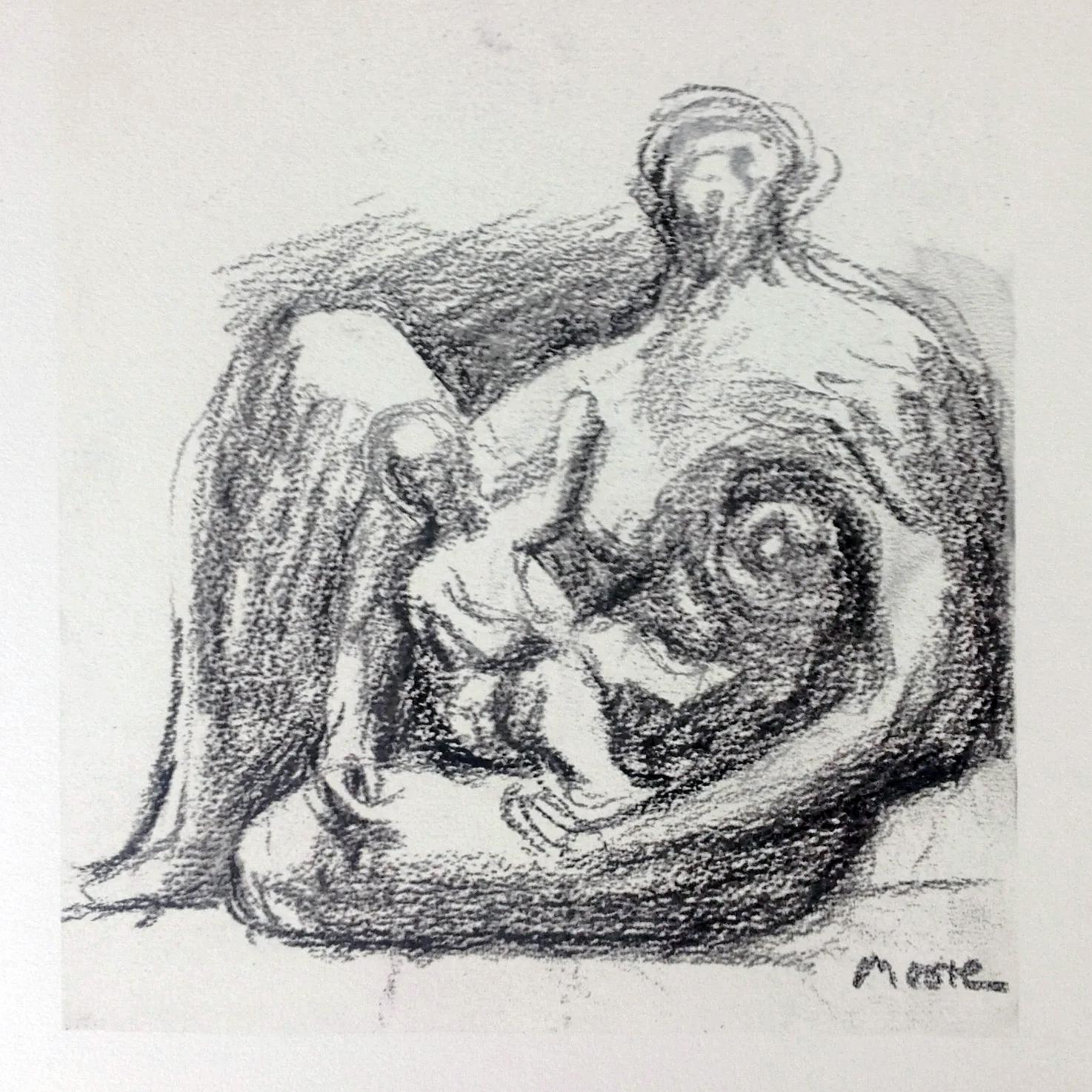 His forms are usually abstractions of the human figure, typically depicting mother-and-child or reclining figures. Moore’s works are usually suggestive of the female body, apart from a phase in the 1950s when he sculpted family groups. His forms are generally pierced or contain hollow spaces. Many interpreters liken the undulating form of his reclining figures to the landscape and hills of his Yorkshire birthplace.