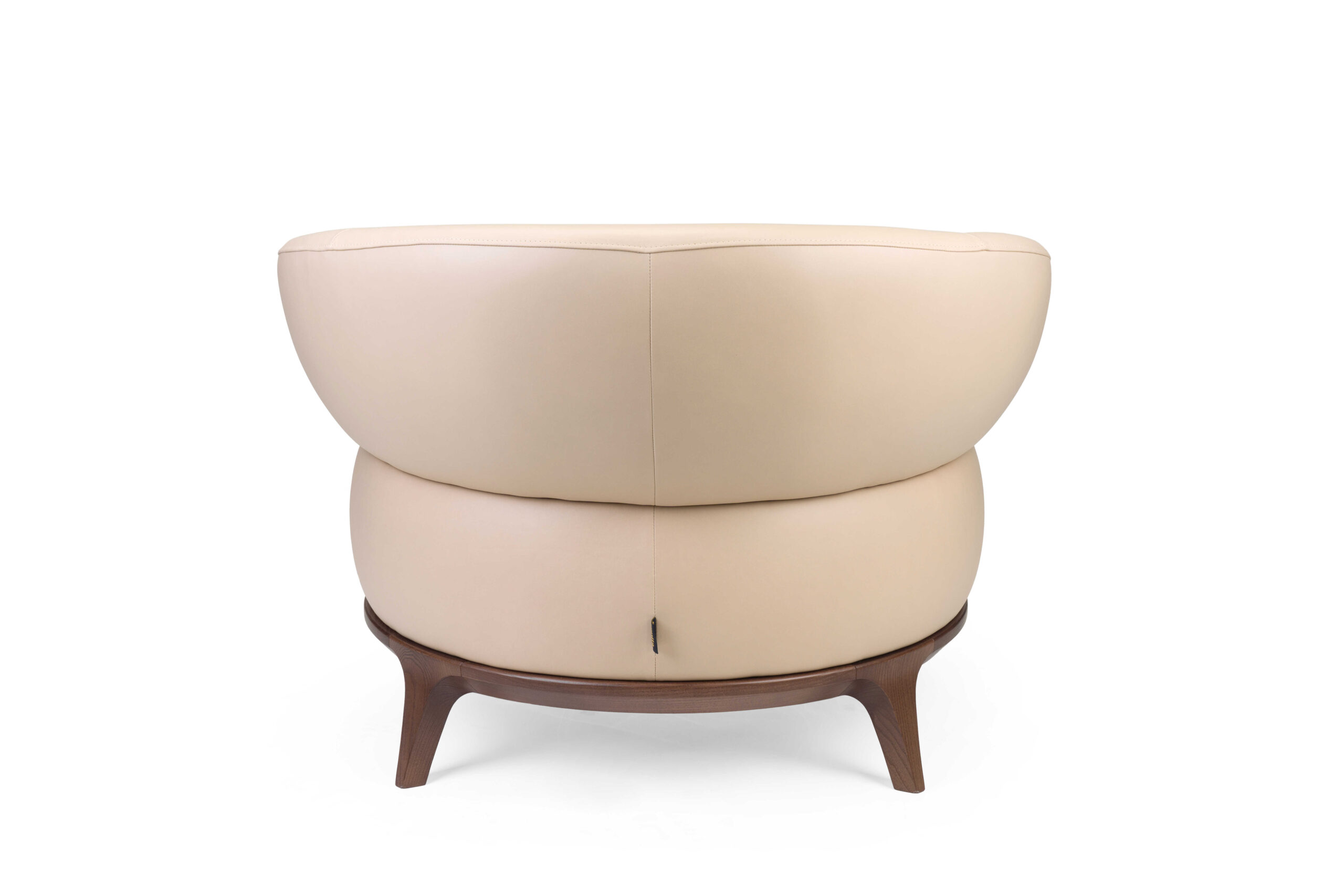 The Samara Lounge Chair is known for its striking visual presence, generous proportions, and sleek yet inviting design. Featuring a solid ash wood base and a bulbous upholstered top, this piece boasts a distinctive silhouette that blends elegance and comfort. Inspired by the soft curves and bold forms of desert dunes, this lounge chair captures nature’s elegance and sophistication, emphasizing bold presence and tranquillity.